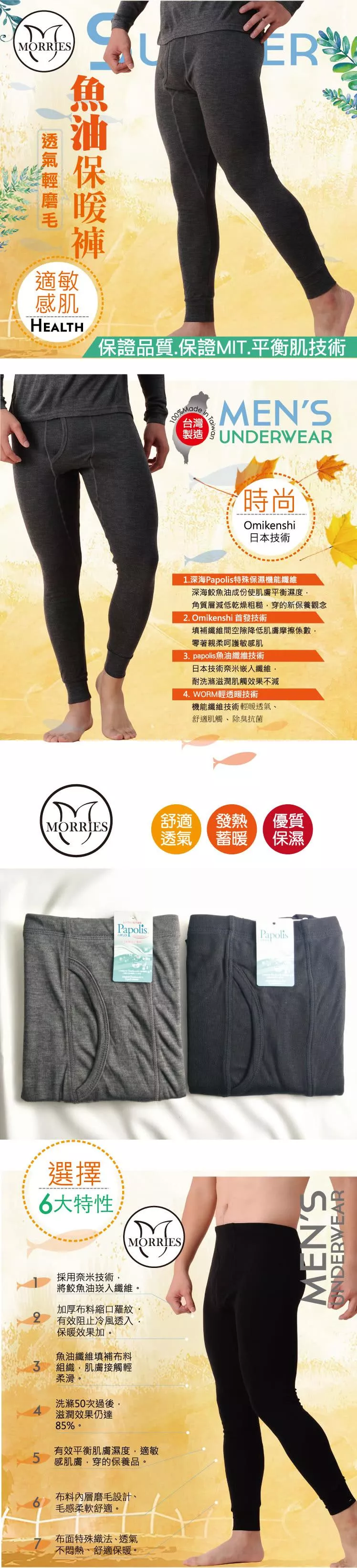 【MORRIES 莫利仕】透氣輕磨毛男保暖褲