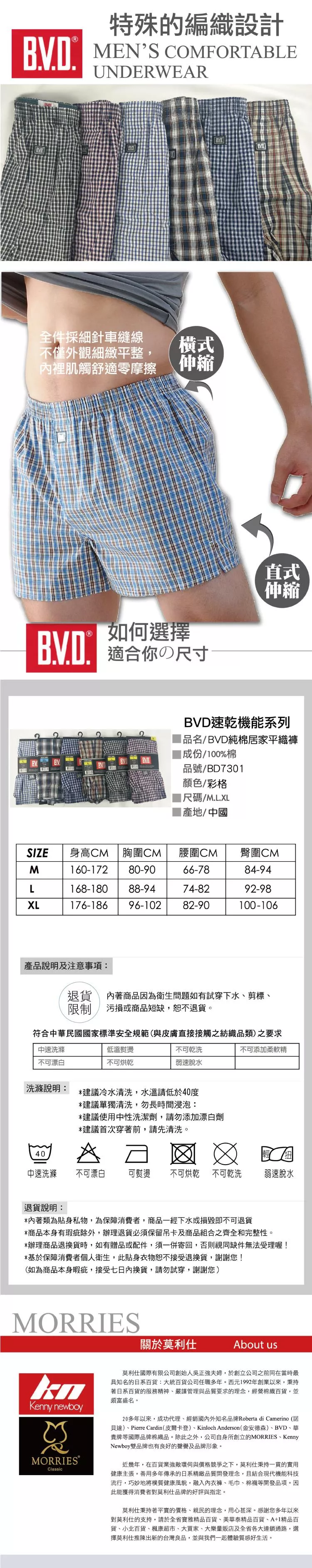 【BVD】㊣純棉平口褲-純棉平織格紋.國際大廠出品(保證原廠.保證品質.保證純棉)BD7301