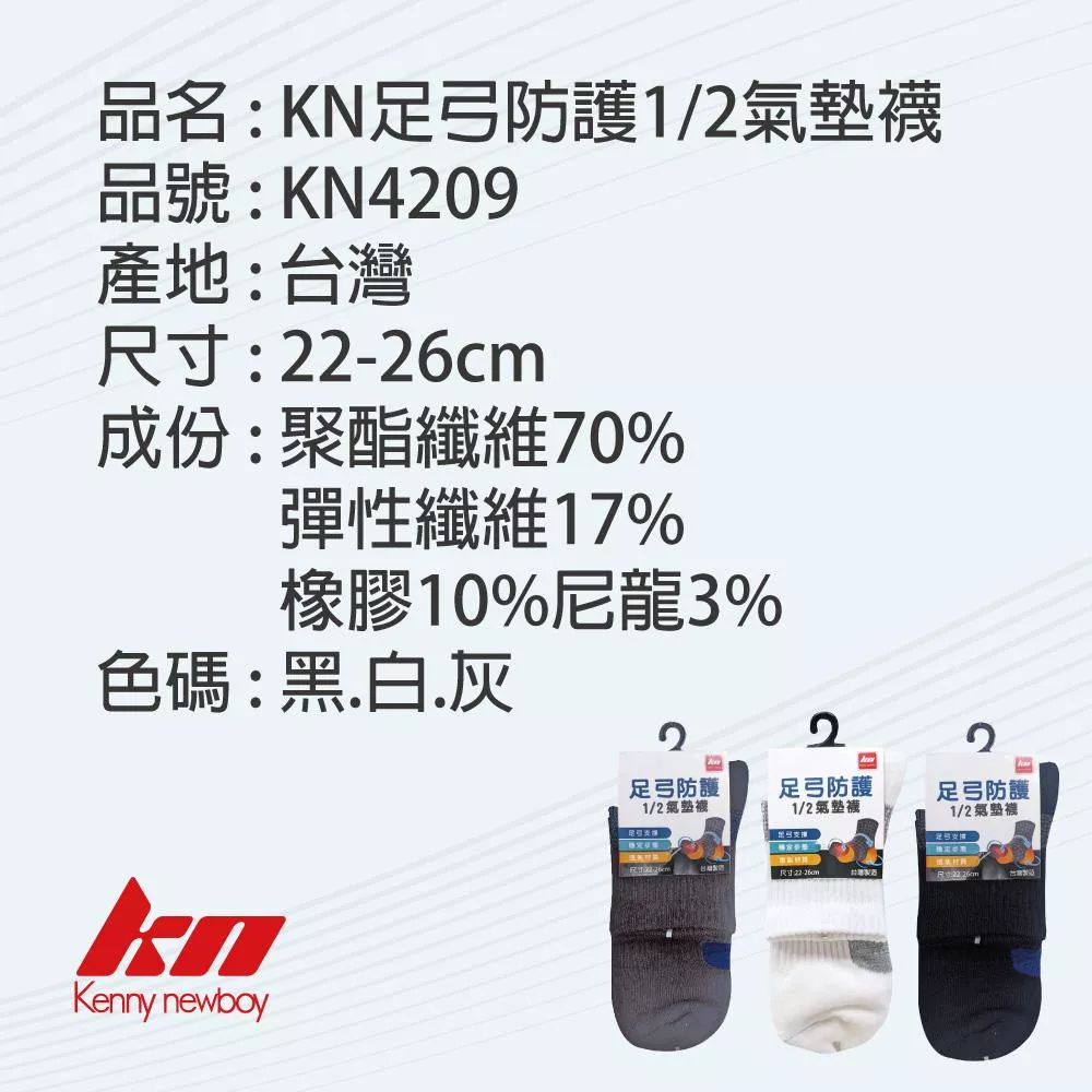 品名 : KN足弓防護1/2氣墊襪