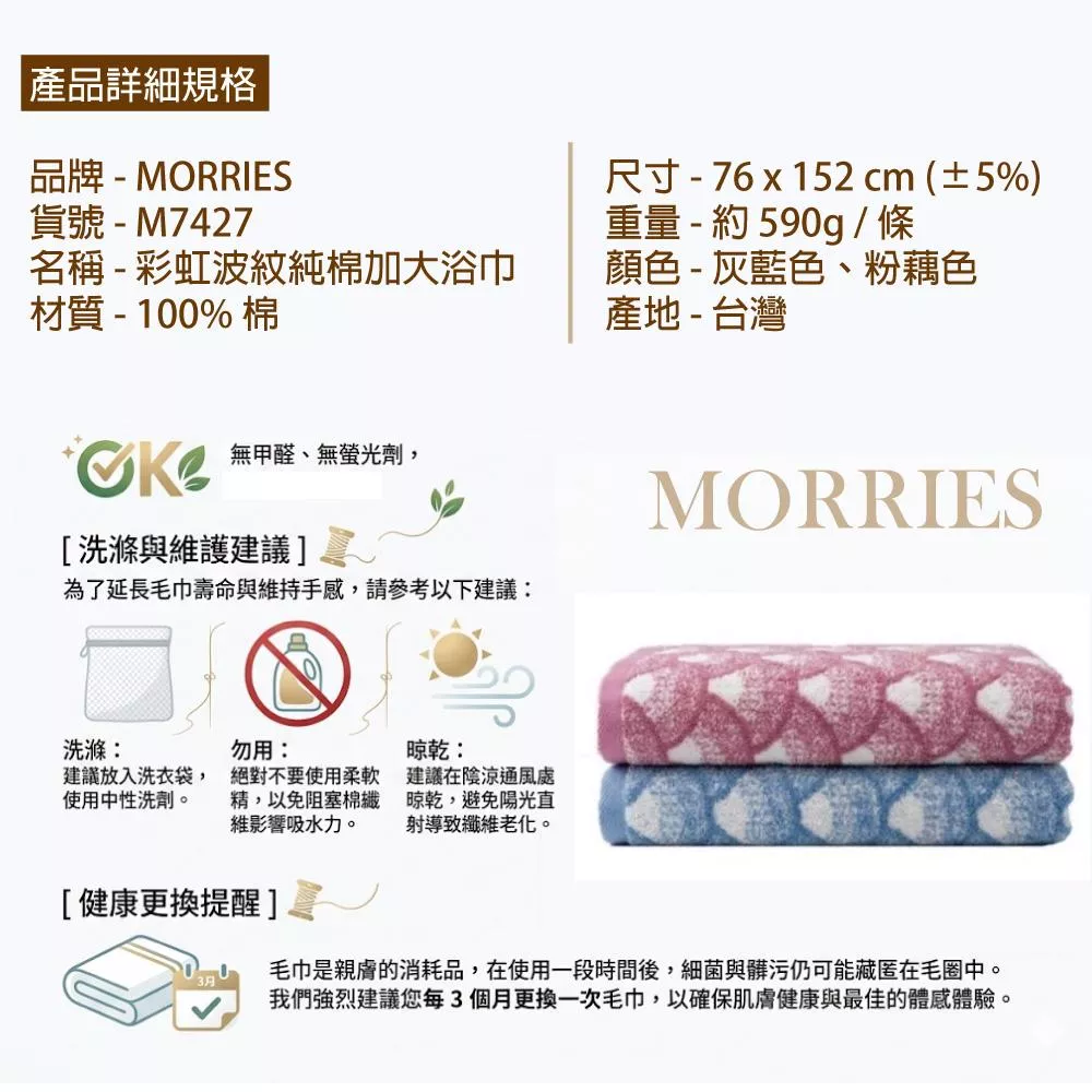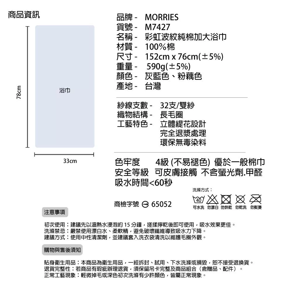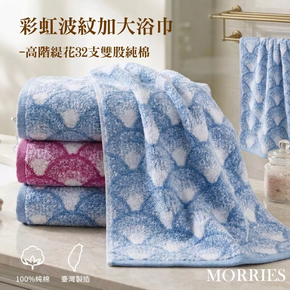 【MORRIES莫利仕】彩虹波紋提花加大浴巾M7427-台灣製